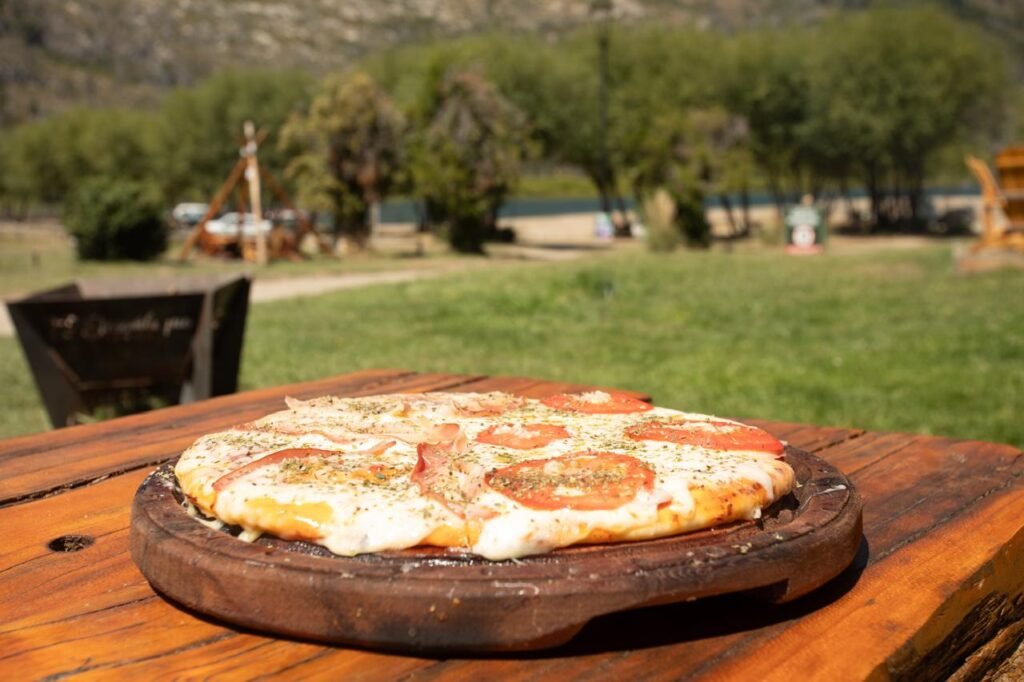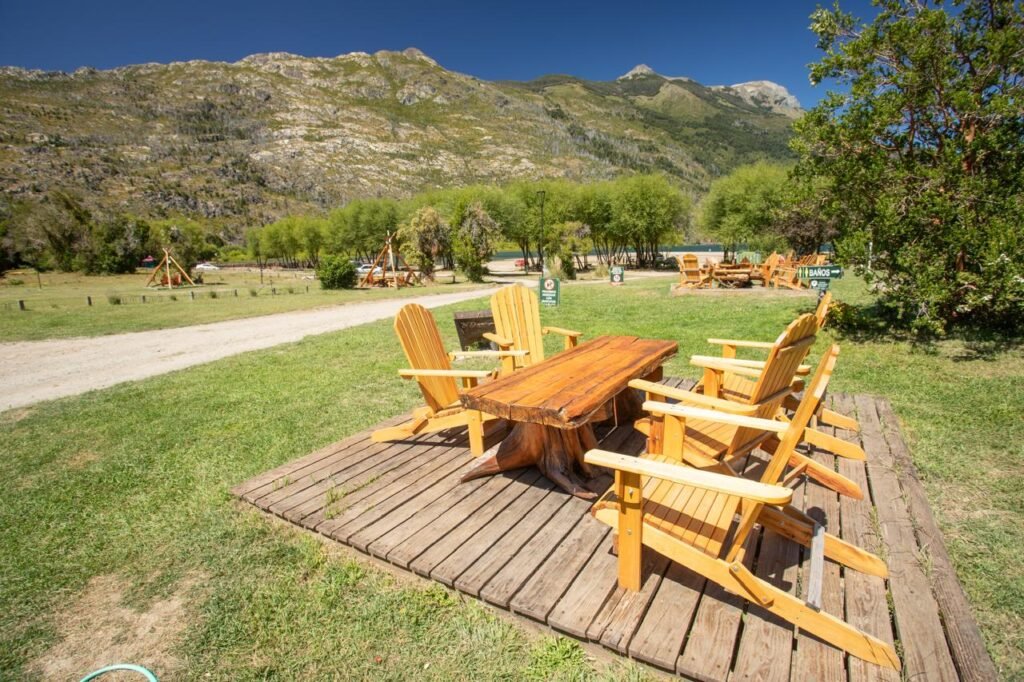 Mesas y fogones junto al lago y al río.